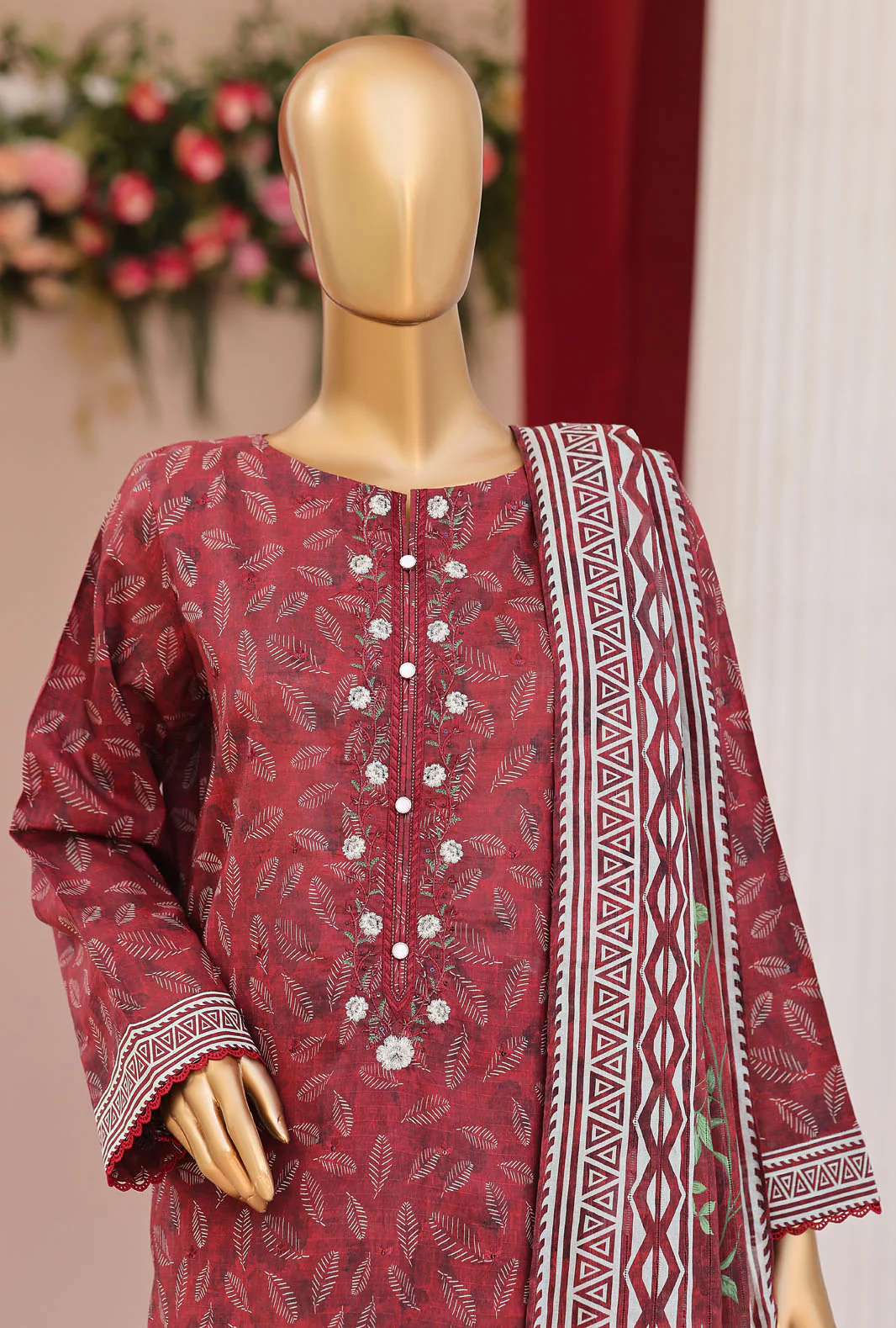 HZ Vital Embroidered Lawn Suit Unstitched 3 Piece VEC 04 – Red