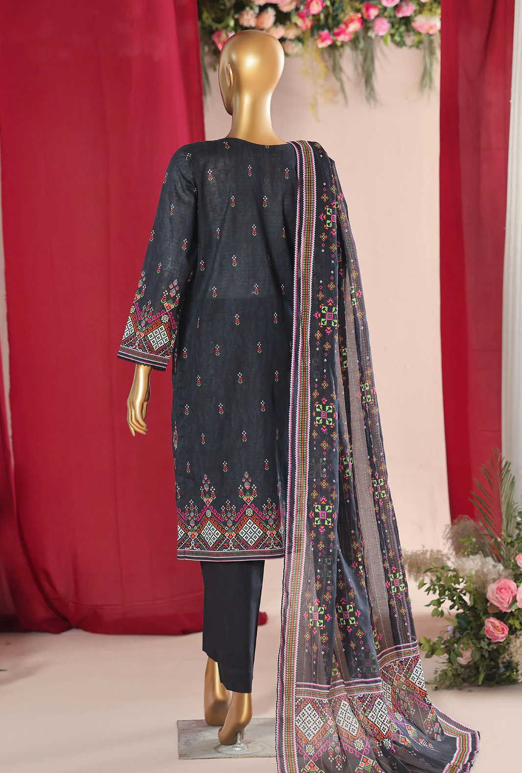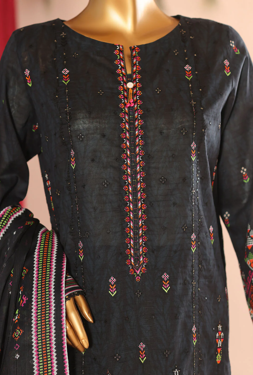 HZ Vital Embroidered Lawn Suit Unstitched 3 Piece VEC 09 – Black